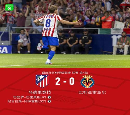 在9月14日進行的西班牙足球甲級聯(lián)賽第4輪比賽中,馬德里競技坐鎮(zhèn)主場迎戰(zhàn)比利亞雷亞爾。比賽開始后,馬德里競技迅速進入狀態(tài),第9分鐘,胡利安-阿爾瓦雷斯送出精準傳球,幫助巴勃羅-巴里奧斯攻入一球,為主隊取得領先。易邊再戰(zhàn),馬德里競技繼續(xù)掌控比賽節(jié)奏,第52分鐘,馬科斯-略倫特送出助攻,尼古拉斯-岡薩雷斯冷靜破門,將比分擴大為2比0。此后雙方均未能改寫比分,馬德里競技以2比0的比分完勝比利亞雷亞爾。