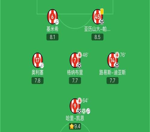 其中凱恩貢獻(xiàn)2球1助,格納布里、帕夫洛維奇和路易斯-迪亞斯各入一球,基米希和奧利塞則各送出1次助攻。