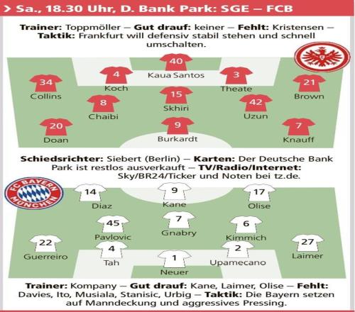 雷速體育10月4日訊 北京時間10月5日00:30,德甲第6輪,法蘭克福坐鎮(zhèn)主場迎戰(zhàn)德甲領(lǐng)頭羊拜仁慕尼黑,本場比賽開始之前,德國媒體《慕尼黑日報》預(yù)測了雙方的首發(fā)陣容,拜仁慕尼黑由目前腳感火熱的凱恩領(lǐng)銜,法蘭克福方面會繼續(xù)首發(fā)連場進(jìn)球的土耳其小將詹·烏尊。