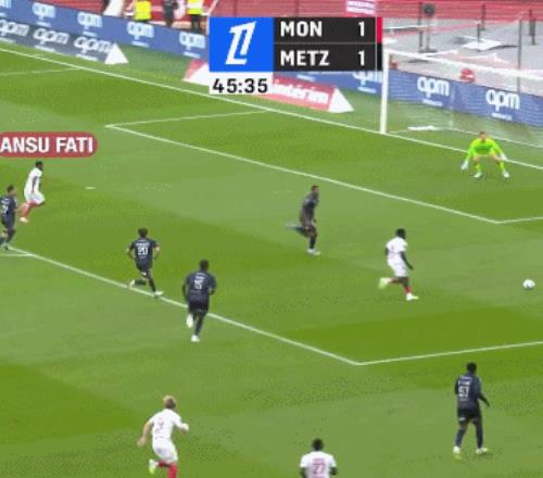 法甲第5輪,摩納哥5-2擊敗梅斯,法蒂替補出場,37秒搶射建功,第83分鐘再進1球,上演梅開二度的好戲。