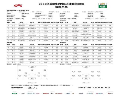 梅州vs海牛:雙方均五外援,劉云、林創(chuàng)益出戰(zhàn)
