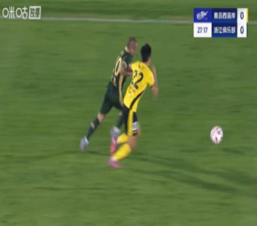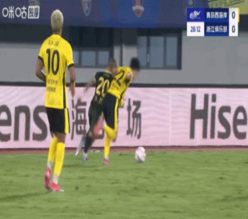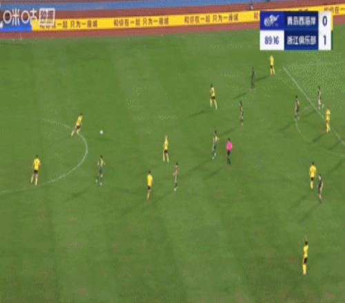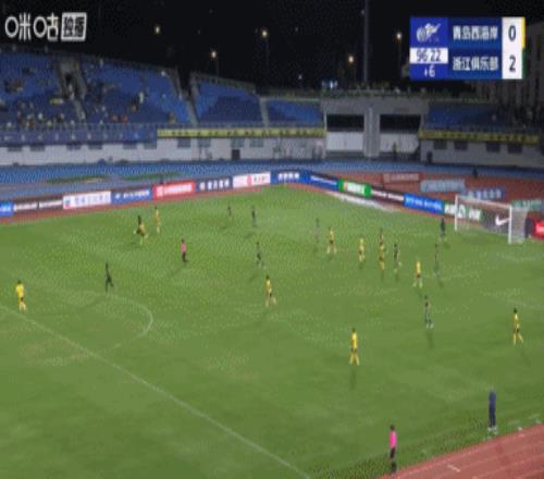 下半場補(bǔ)時6分鐘。最終全場比賽結(jié)束,青島西海岸0-2浙江隊(duì)。